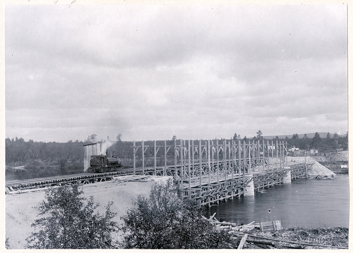 Bro över Kaitumälv.Ånglok SJ Pb 316 ser man stående på spåret.