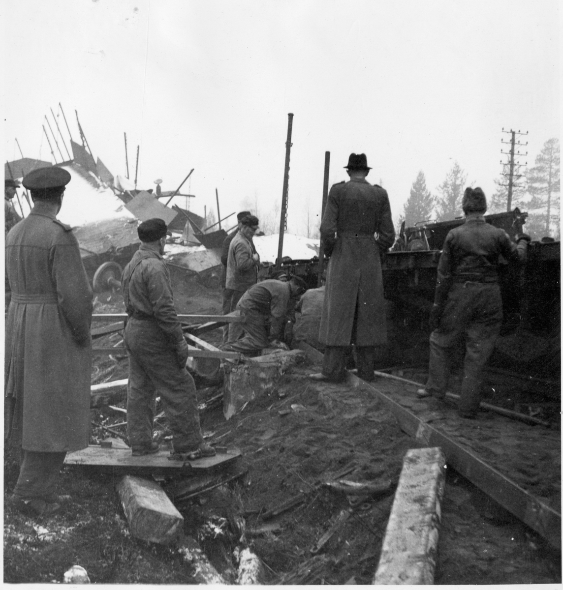 Personal vid urspårning mellan Håmojåkk och Linaälv.