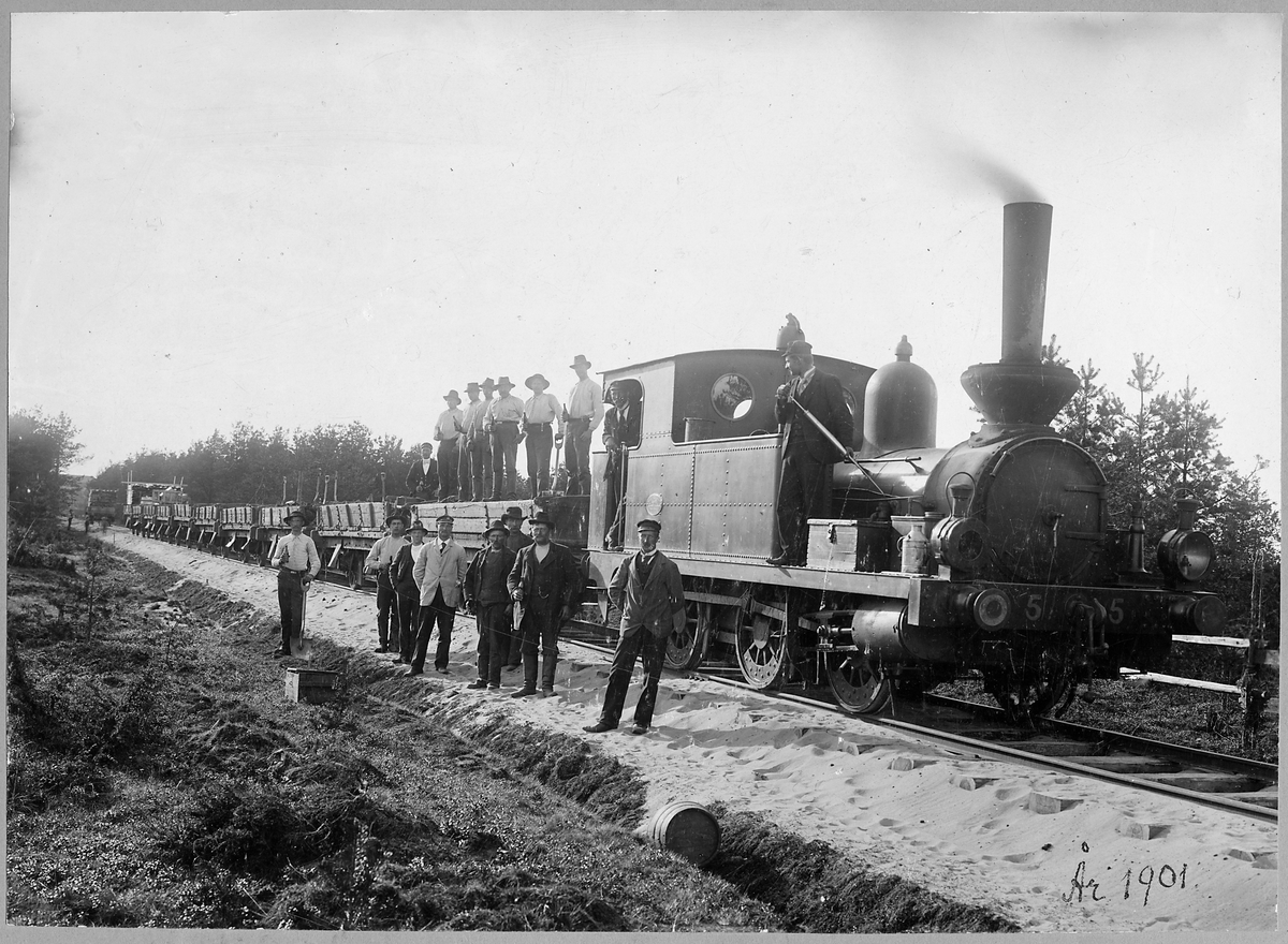 Gislavedsbanan under byggnad. Bandelen Reftele - Gislaved. Vid Gyllenfors. Halmstad Nässjö Järnväg, HNJ A 5.