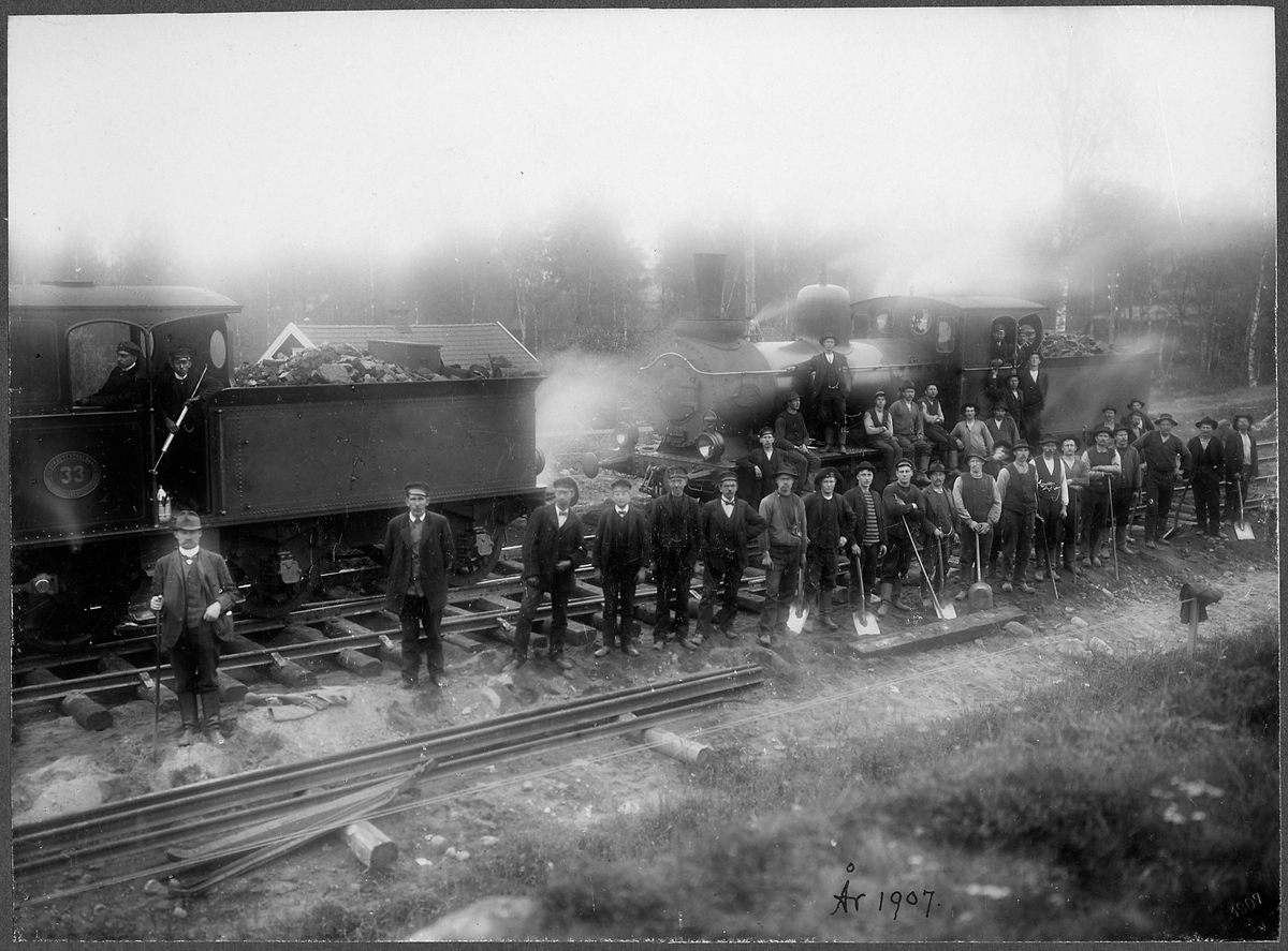 Loken i bild är från vänster, Västra Centralbanans Järnväg, VCJ lok 33, och Västra Centralbanans Järnväg, VCJ lok 34.