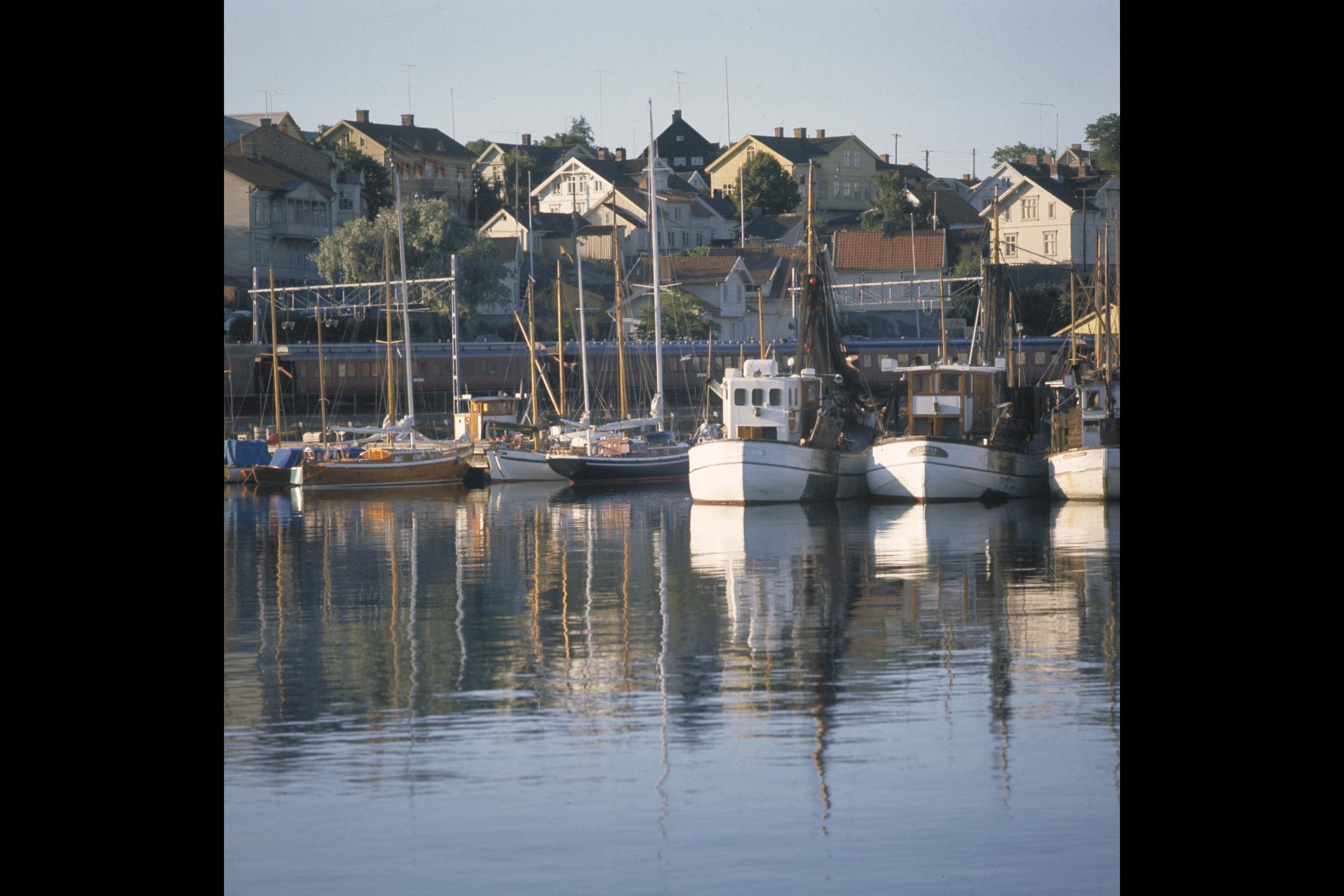 Bild från hamnen upp mot Vatuland, och Korpeberget. Bilden troligen från mitten av 1960-talet.