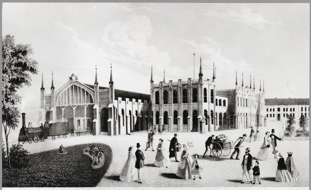 Stationshuset vid bangården, Göteborg. Litografi år 1857