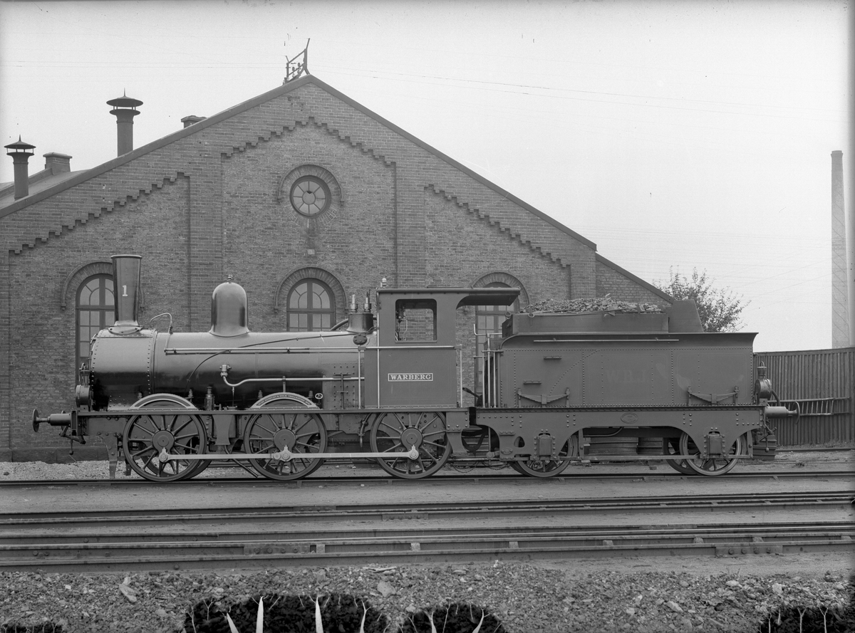 WBJ lok 1. Fick namnet Warberg. Loket tillverkades av Nohab. Bilden är troligen tagen vid lleveransen.