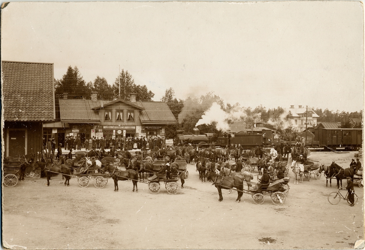 Kumlas äldsta järnvägsstation. På spåret står ånglok SJ Da 350.