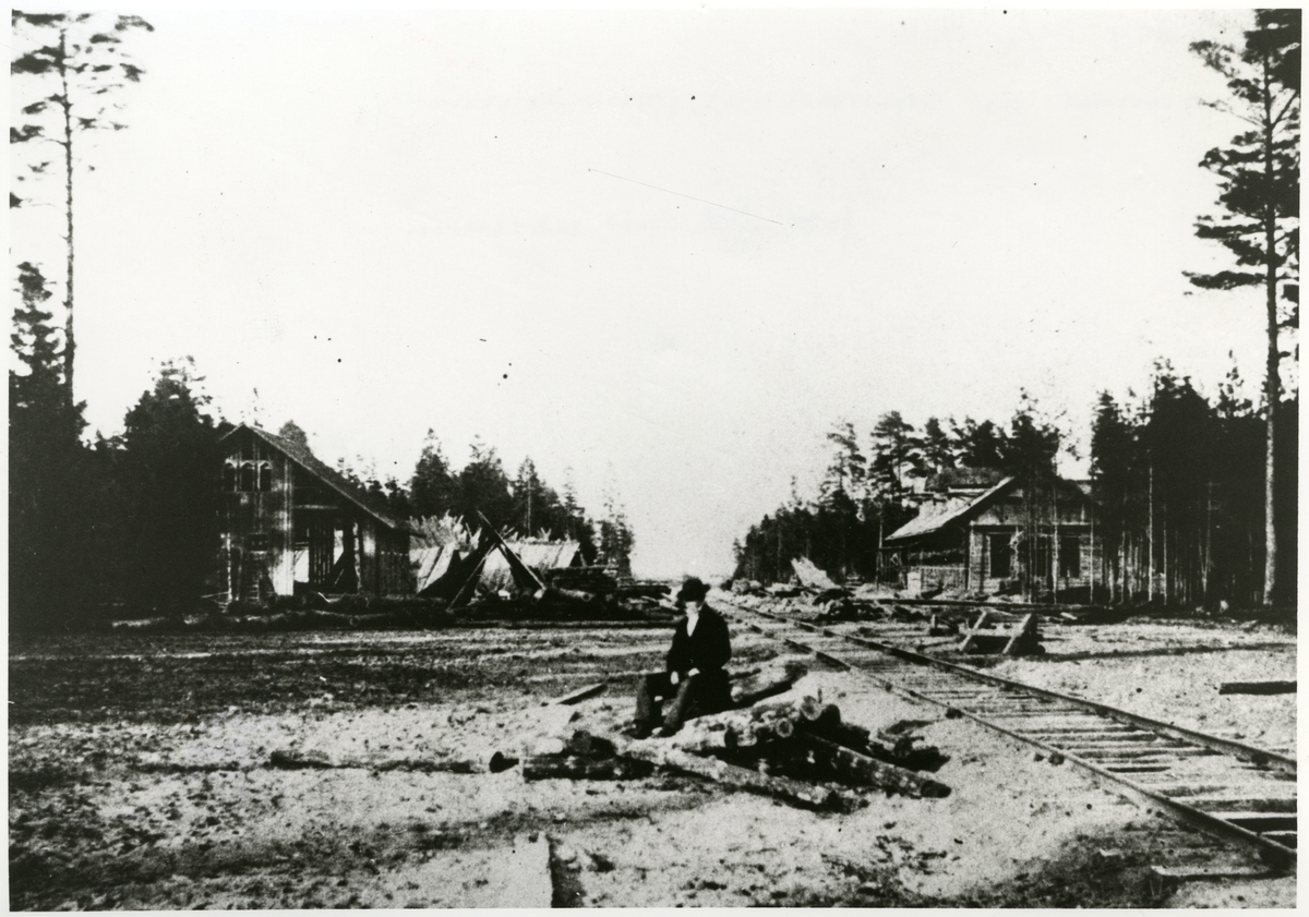 Byggandet av Hallsbergs stationshus och godsmagasin.