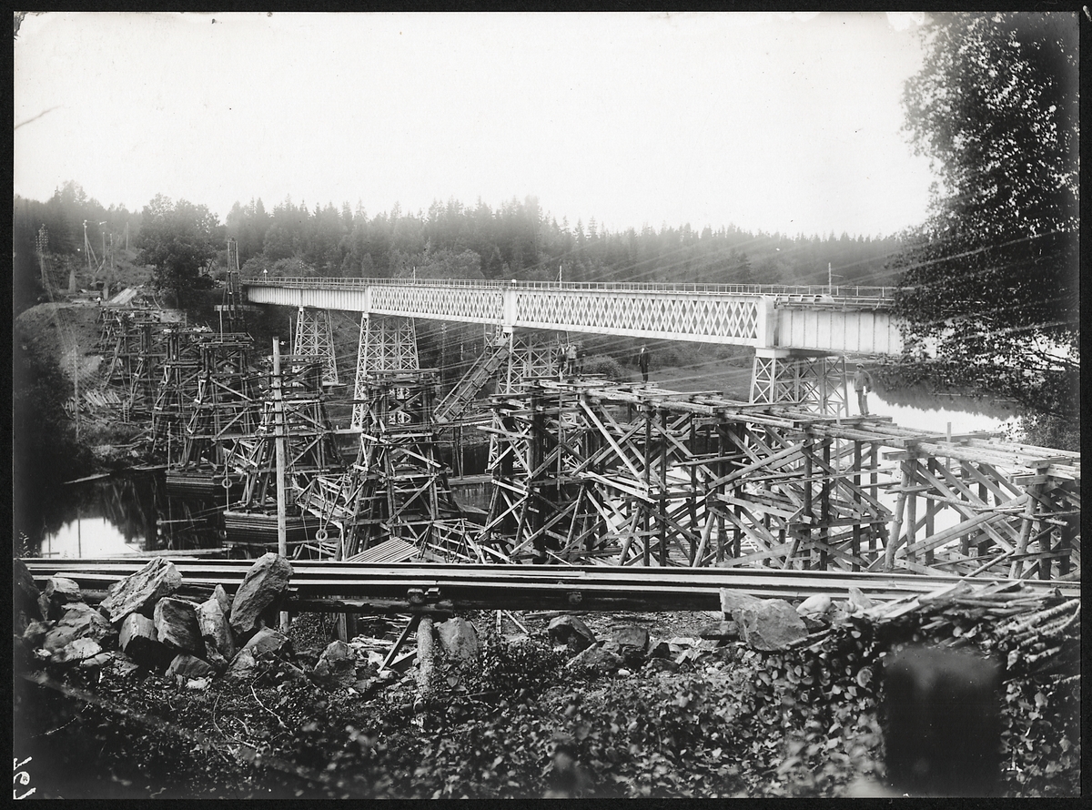 Brobygge av järnvägsbro över Norsälven på linjen mellan Kil-Fagerås.