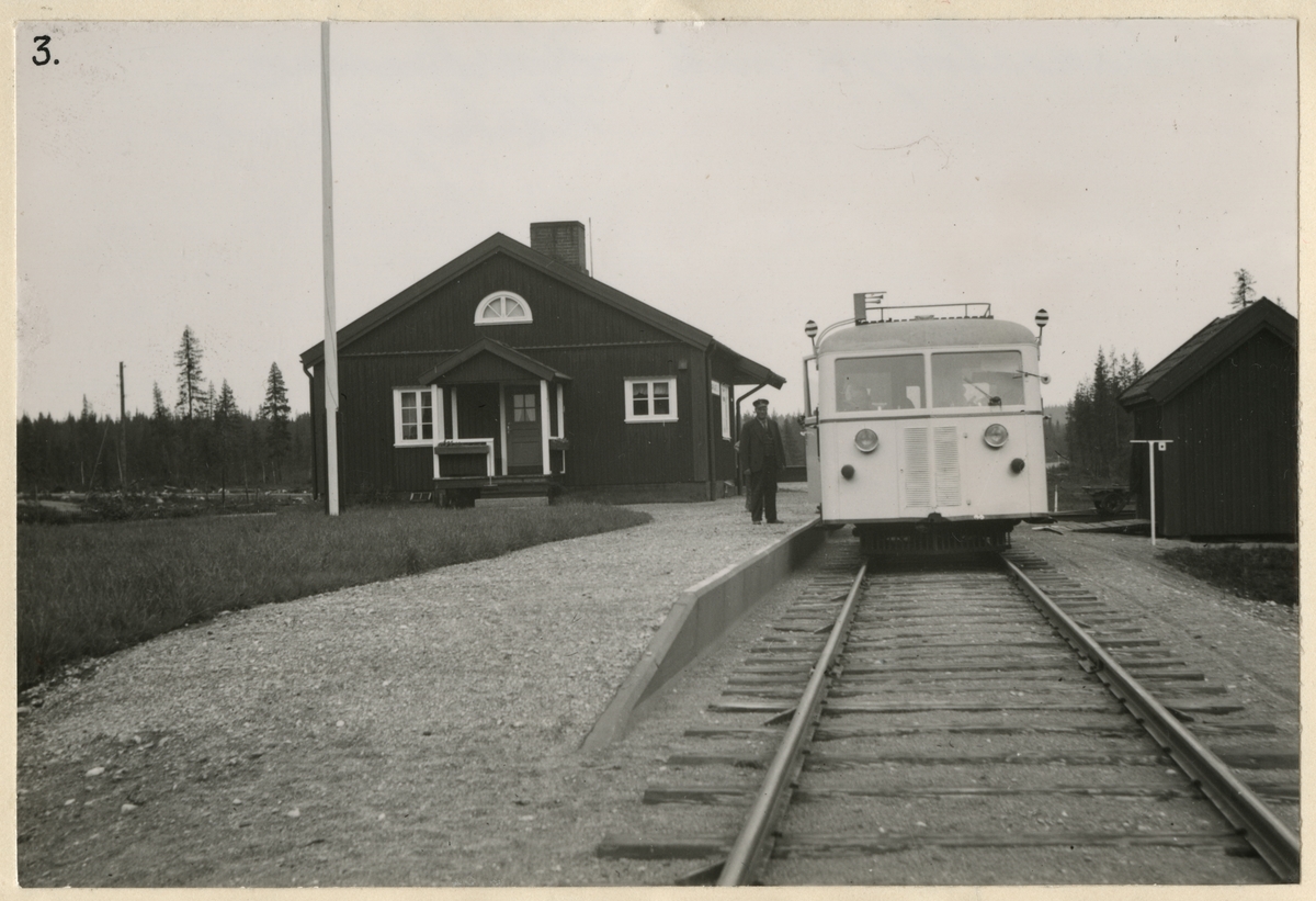 Envåningshus i trä. Motorvagn SJ Y. Hållplats 1937, persontrafik upphör 1991, från 1993 säsonghållplats.