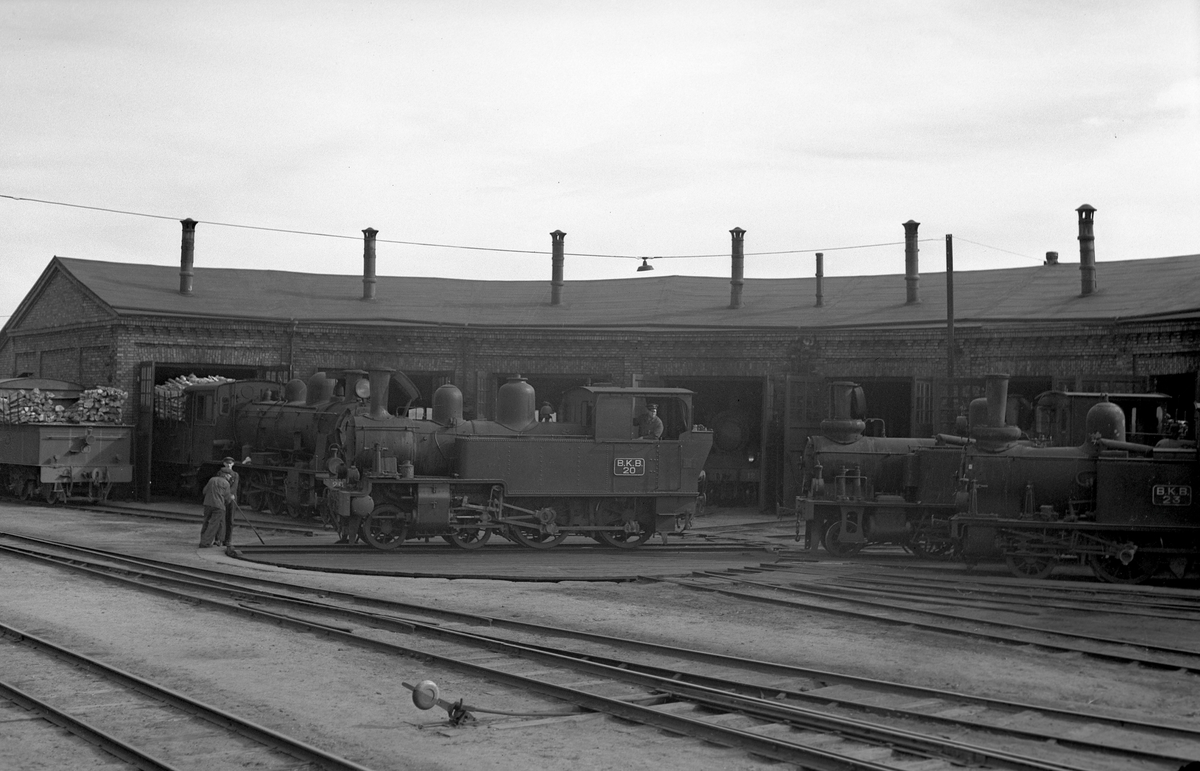 Ronneby lokstall. BKB lok 20 (sedermera SJ W4t 4007) och BKB lok 23 (sedermera SJ W6t 4009).