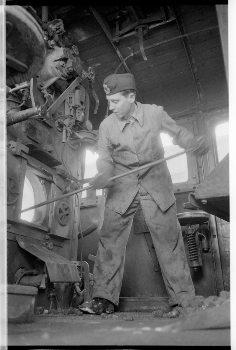 Eldaren skyfflar kol.