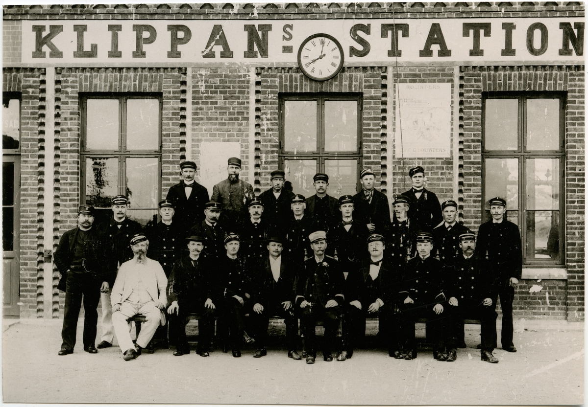 Stående bortre raden från väster: 1. Stationskarl Nyström, 2. ?