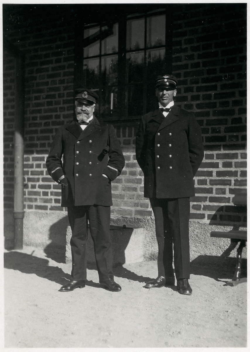 Mannen till vänster är Stationsinspektor Folcker vid Ålberga station.