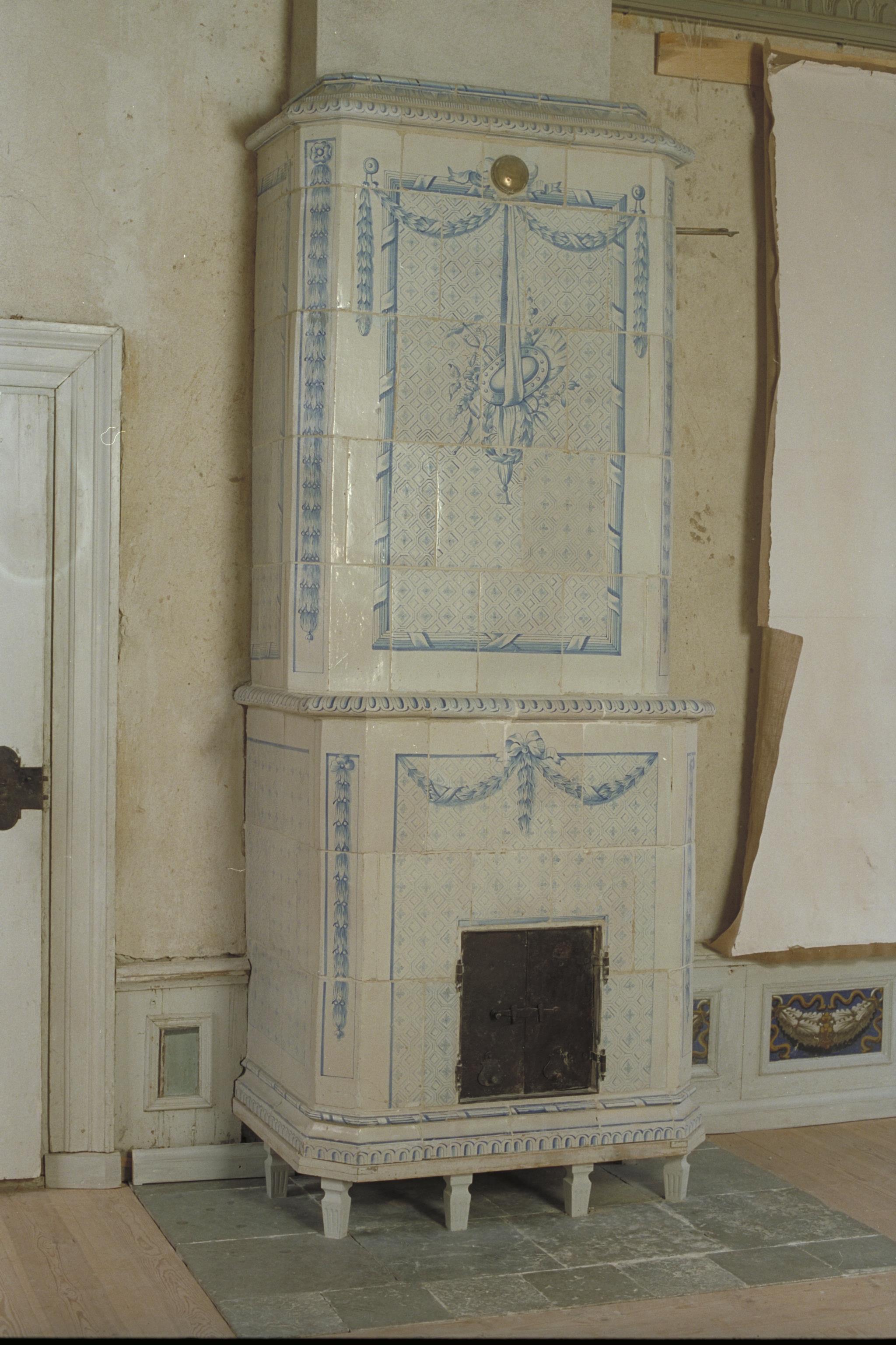 Rum 2K, norra väggen. Kakelugn.