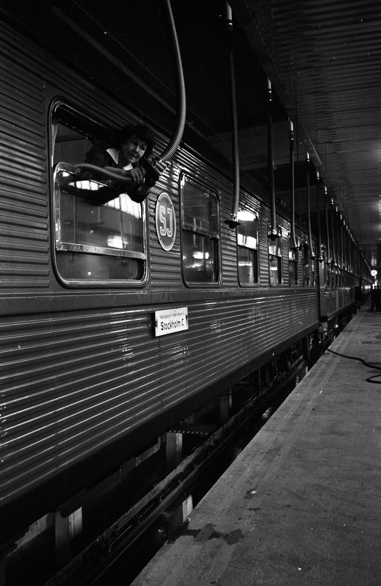 Dammsugning av vagn. Vagnhallen, Hagalund