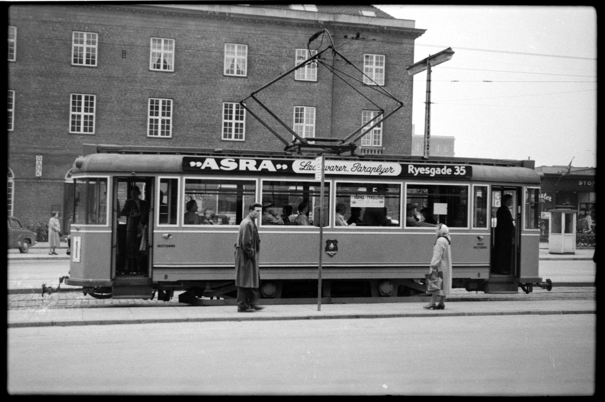 Århus Sporveje, ÅS spårvagn 8 vid hållplats på linje 1.