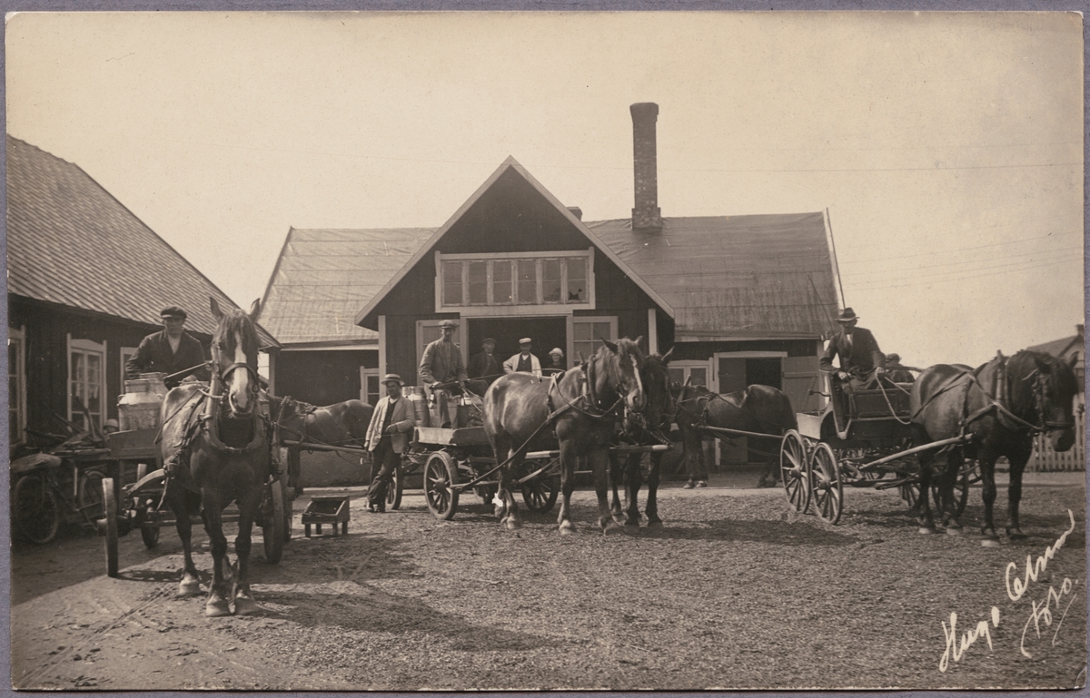 Flera ekipage redo att leverera mejeriprodukter.