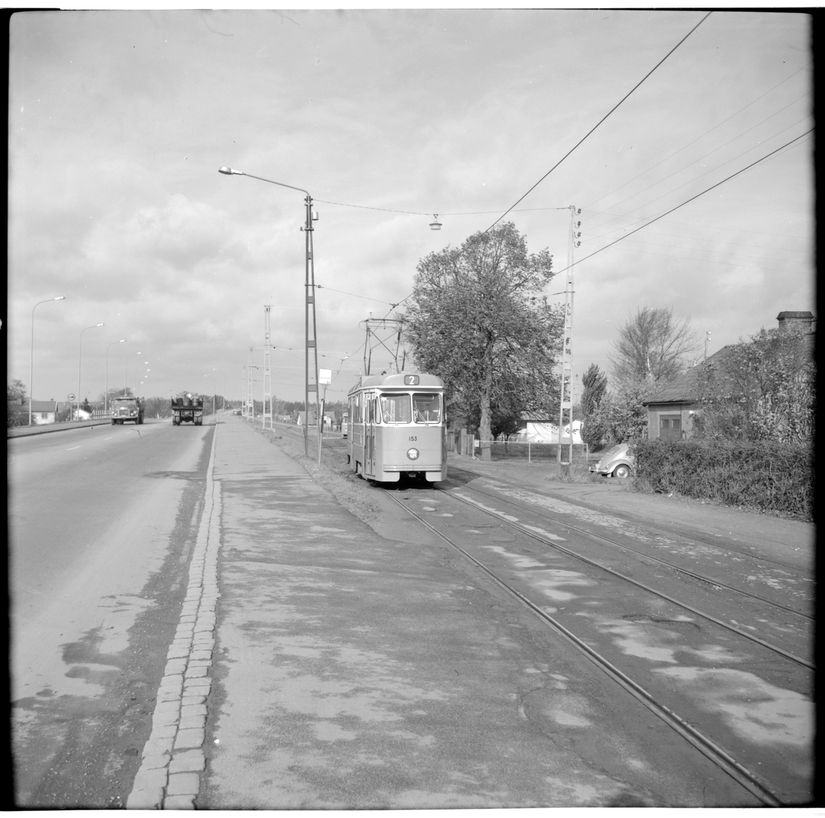 Norrköping Spårvägar, NS M67 153 linje 2 vid hållplats på Finspångsvägen.