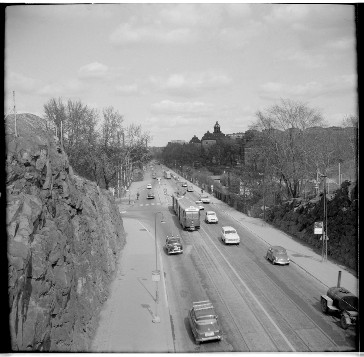 Vy över Lidingövägen norrut sedd från gångbron vid stadion.