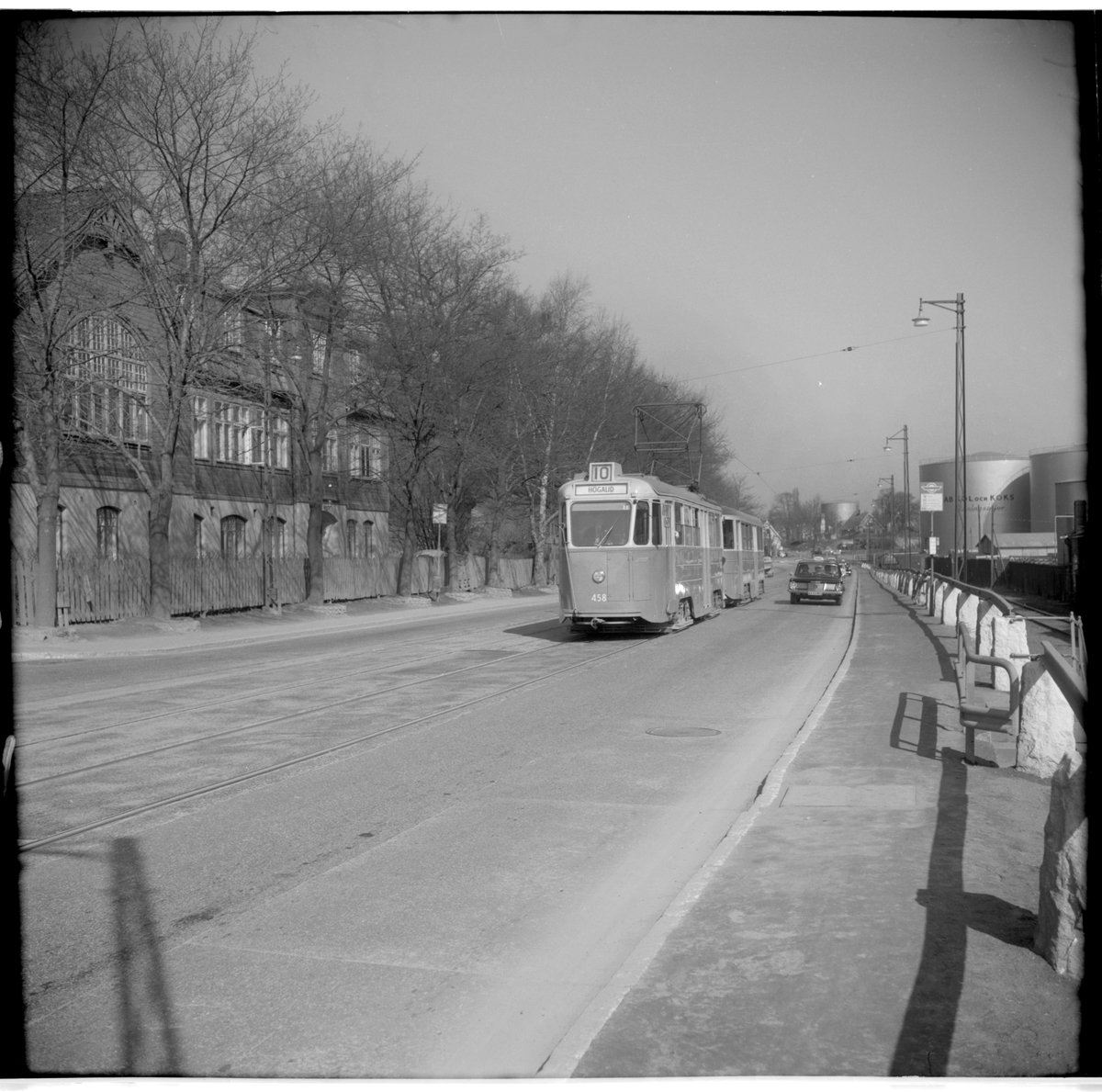 Aktiebolaget Stockholms Spårvägar, SS A25 458 "mustang" linje 10 Värtan - Slussen - Hornstull på Lidingövägen.