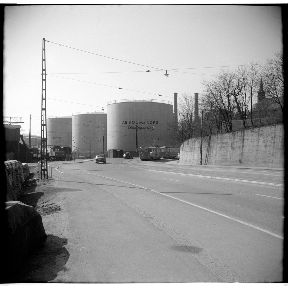 Aktiebolaget Stockholms Spårvägar, SS A25 458 "mustang" linje 10 Värtan - Slussen - Hornstull kör ut på Norra Hamnvägen.