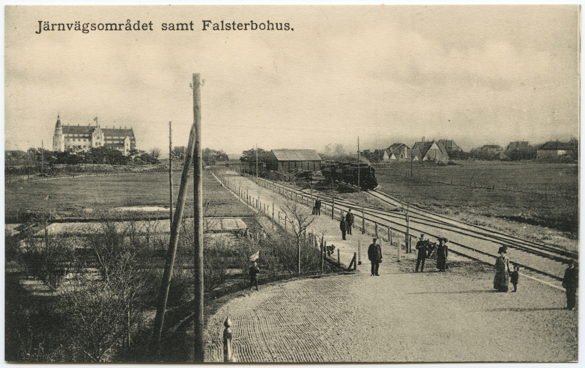 Ångtåg vid Falsterbo station och hotell Falsterbohus i bakgrunden.
