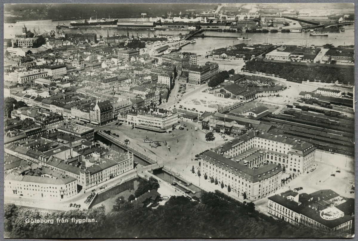 Flygfoto över Göteborg. Drottningtorget med järnvägsstationen.