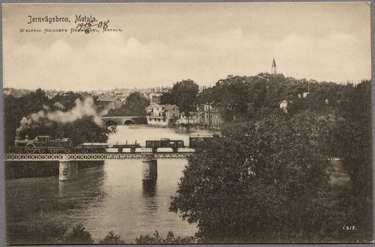 Järnvägsbron över Motala Ström på linjen mellan Fågelsta och Motala.