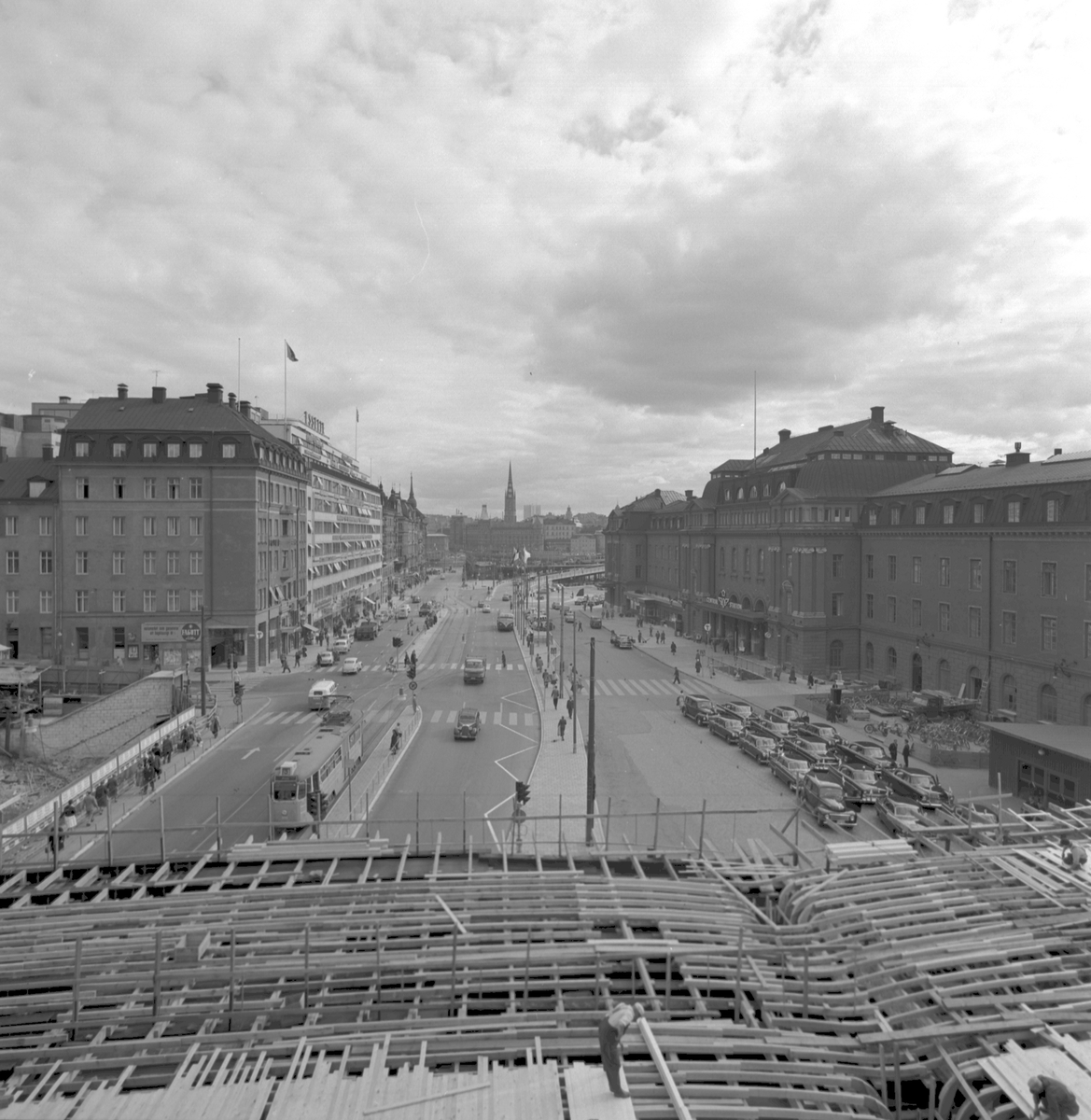 Centralplan, Stockholms Central. Bygge av Klarabergsviadukten.