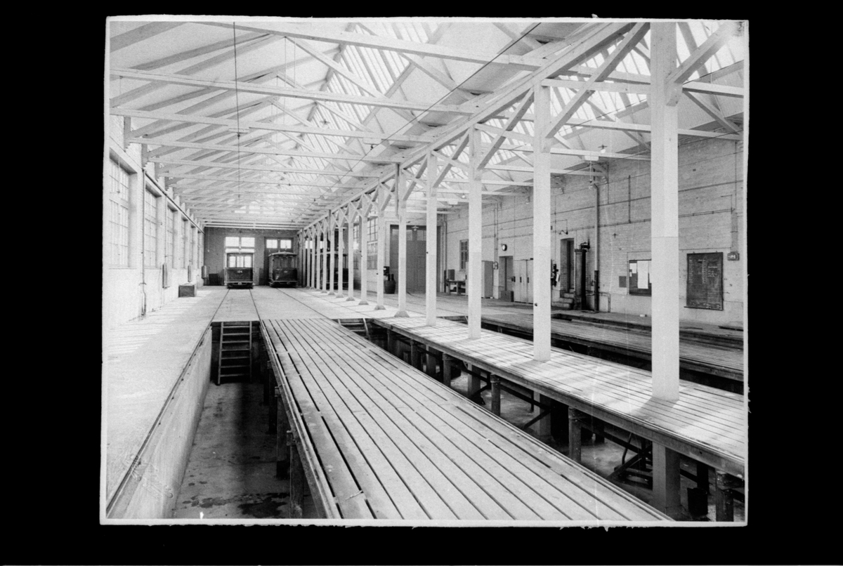 Titel: Bild inifrån spårvagnshallen på Söder vid Söderskolan i Gävle.