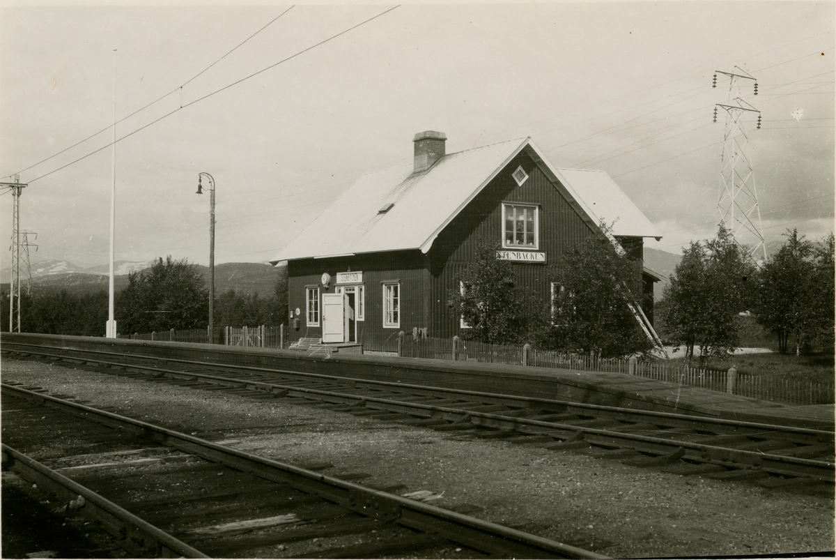 Stenbackens station. Statens Järnvägar, SJ. Banan öppnad 1903. Banan elektrifierades 1915. Stationshuset byggd 1902 och sålt 1998.