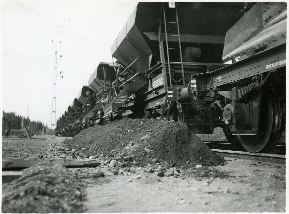 Titel: På linjen mellan Järna och Katrineholm. Grussträng som uppstår när vagnarna plogar upp grus.