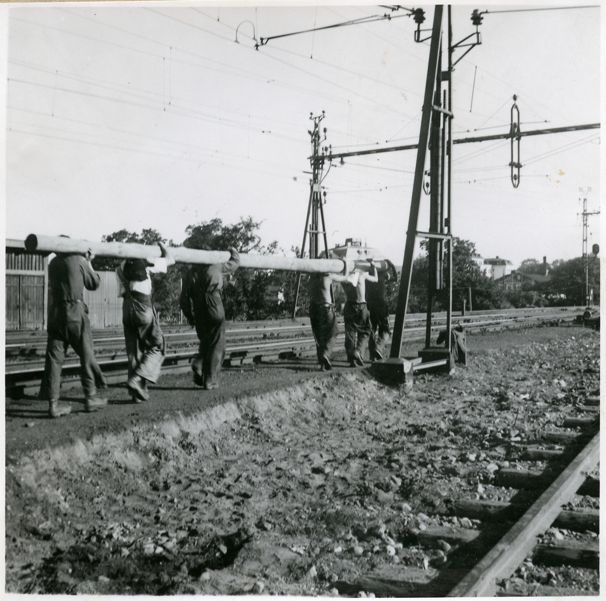 Arbete med utläggning av dubbelspår vid Skövde.