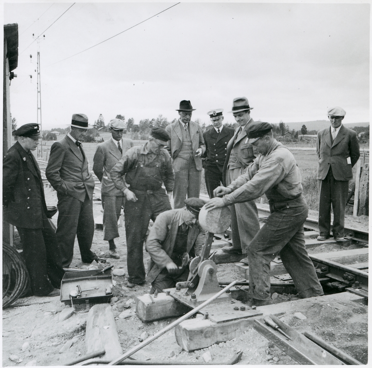 Växeln vid södra infarten kopplas för Järnvägsbygget i Ånge.