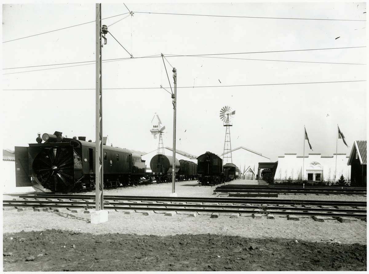Baltiska utställningen 1914. Snöslunga och godsvagnar.