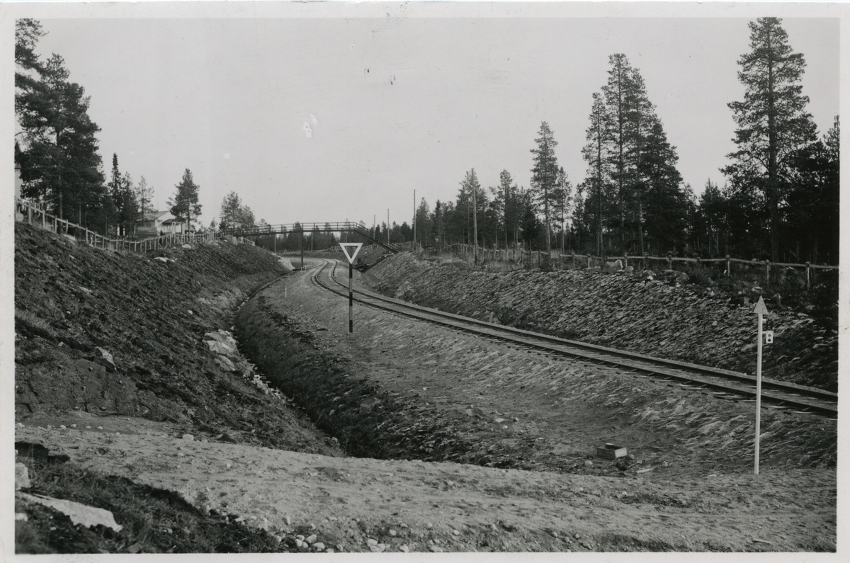 Vy över utgrävning av myrmark, i samband med byggande av banvall och spårläggande.