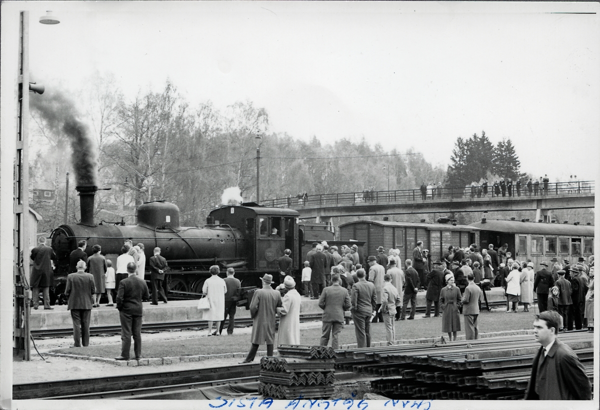 Norsholm-Västervik-Hultsfreds Järnvägar, NVHJ. Sista smalspåriga ångloksdragna persontåget klart för avgång från Åtvidaberg.