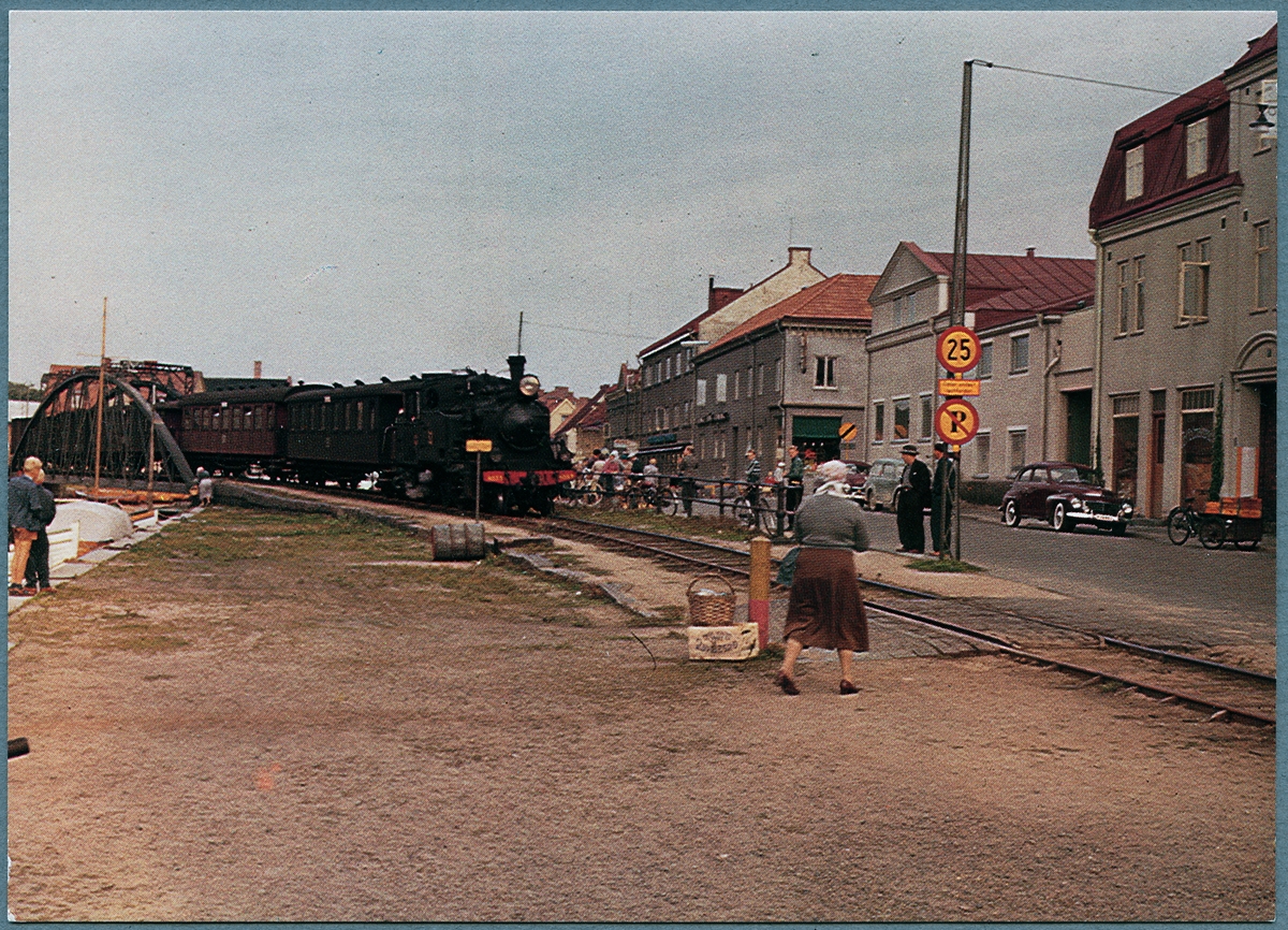 Statens Järnvägar, SJ S3t 4063 passerar hamnbron i Karlshamn på Mellersta Blekinges Järnväg, MBIJ.