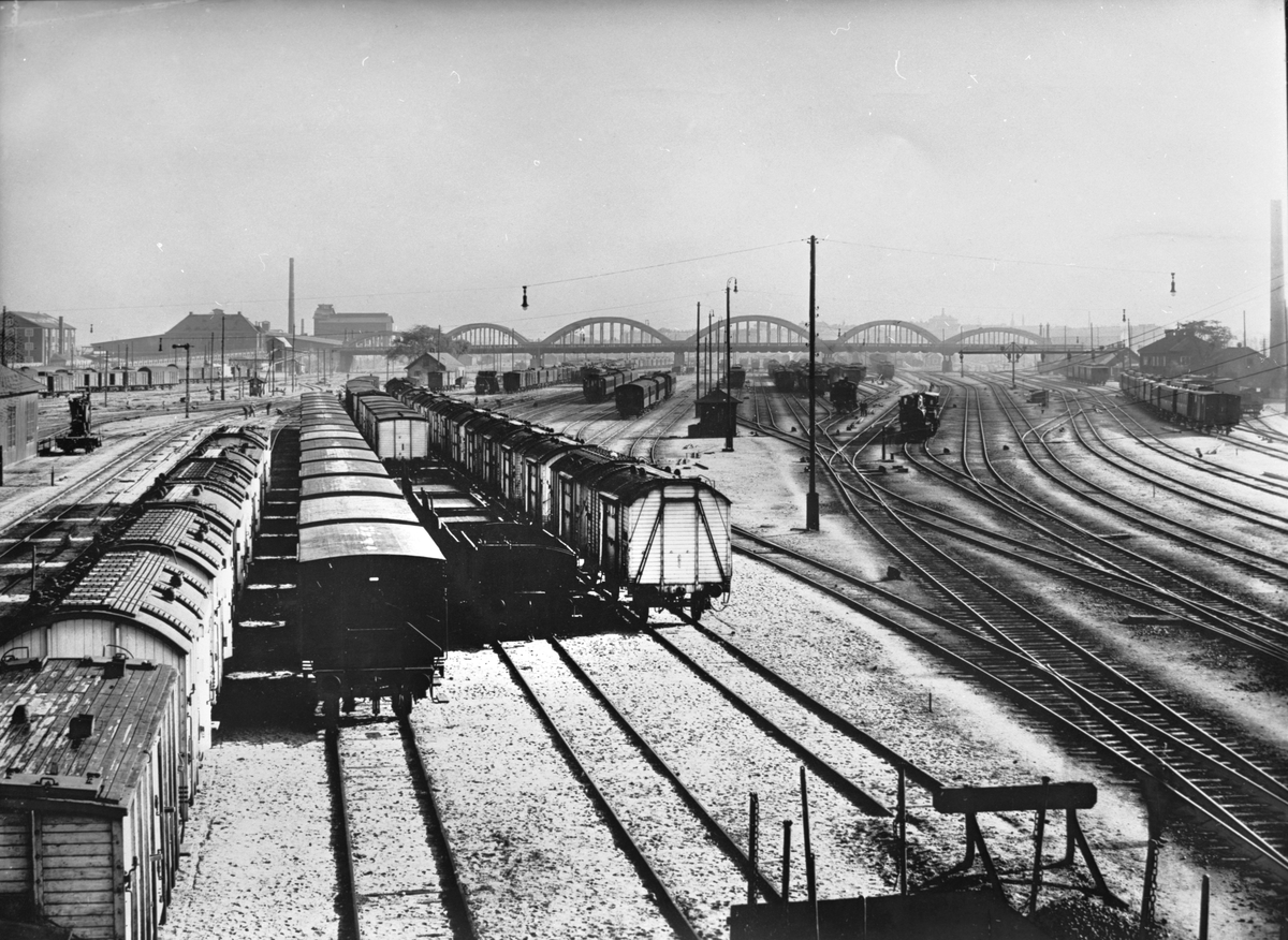 Driftbangården. Gatuviadukten över bangården.