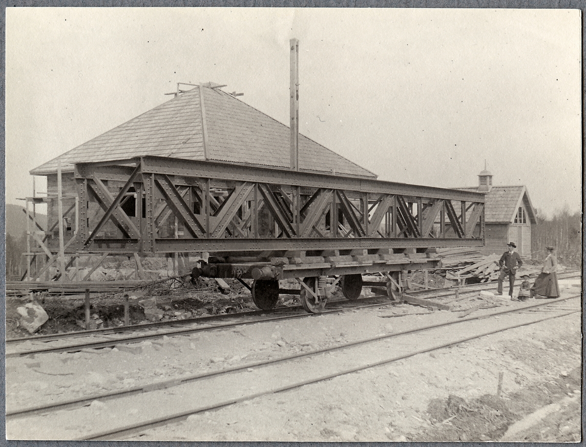Tansåbrons spann lastat på godsvagn vid Arvslindan station.