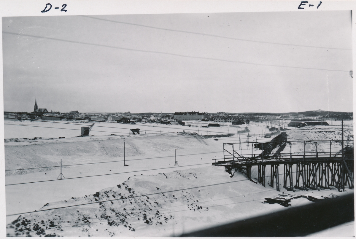 Bangård vid Luleå station. Redan 1883 började anläggningsarbeten på Svartön vid Luleå för järnvägen Luleå Gällivare - Luossavaara - Victoriahamn. Det tog nästan 6 år innan det första malmtåget kom ned till Luleå 1888. Banan byggdes av Sverige & Norge Järnväg.