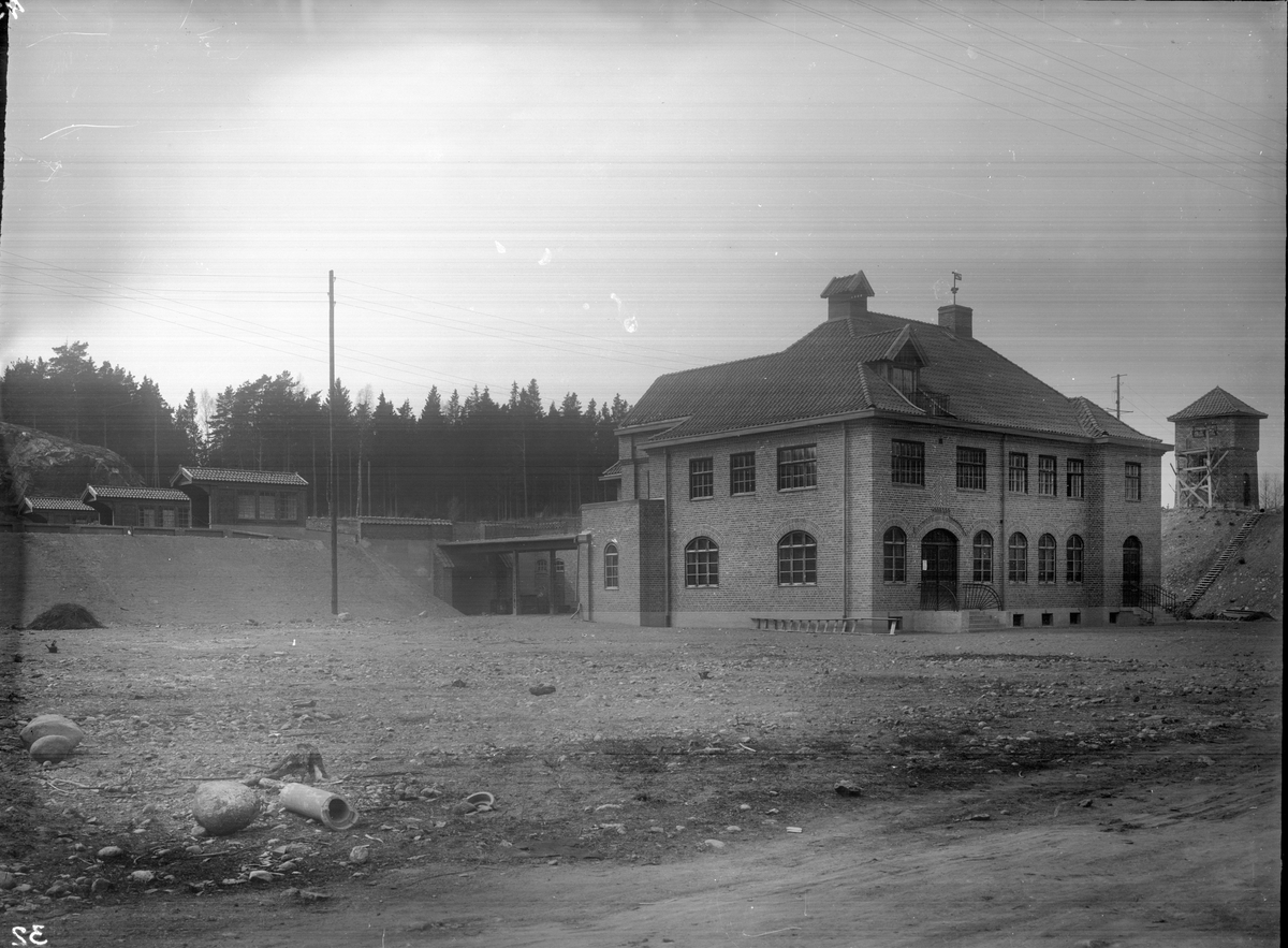 Nya stationshuset Södertälje Södra under uppförande. Det togs i bruk 1921.
