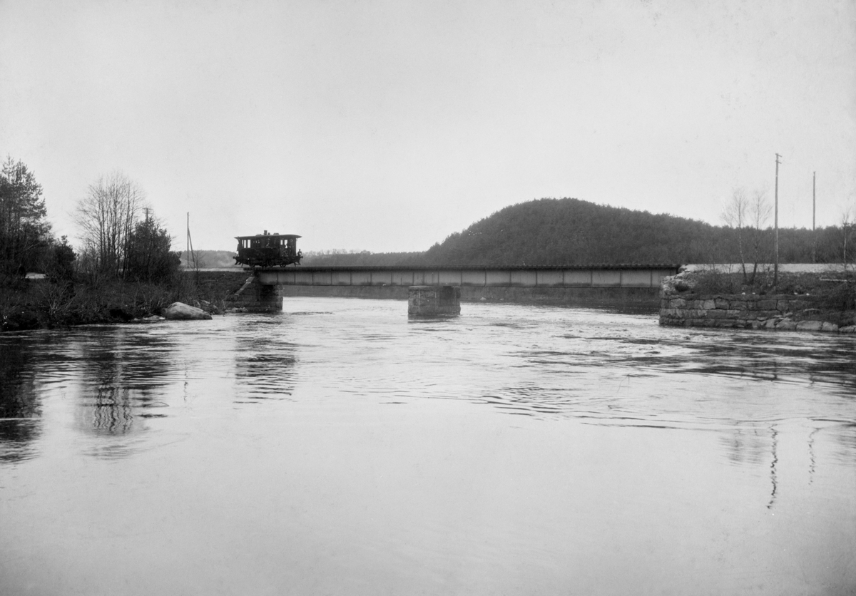 Halmstad - Nässjö Järnväg. HNJ. Ångvagn. Nissabron vid Oskarsström.