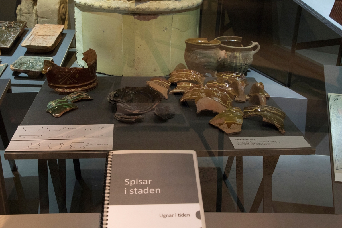 Stadshistoriska utställningen i arkivhuset. Keramik från krukmakare Peter Ekmans verkstad på Tyska maden, platsen för Arkivhuset. Fynd i kvarteret Diplomaten 2007.
