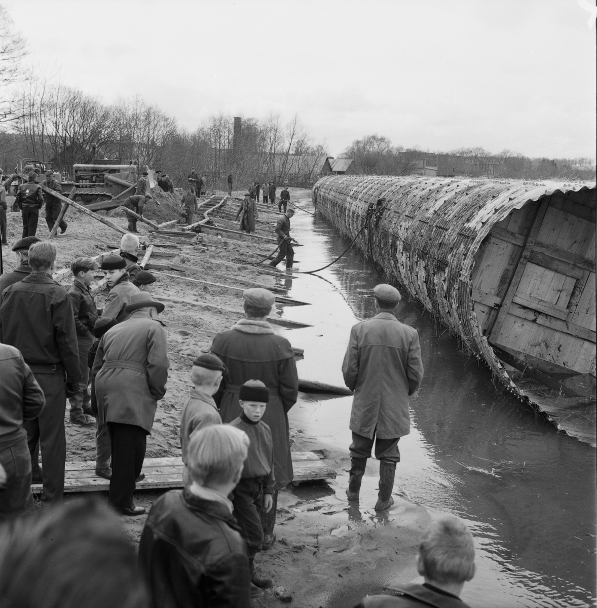 Här rullas avloppstunneln ut i Vättern från stranden i Huskvarna.