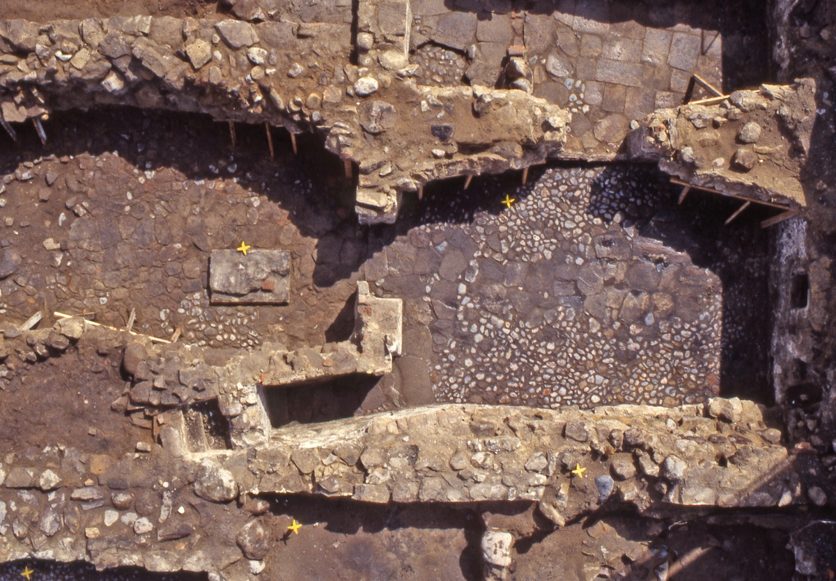 Framgrävda källare i kvarteret Ankaret i centrala Jönköping. Bilden togs i samband med en arkeologisk undersökning 1996.