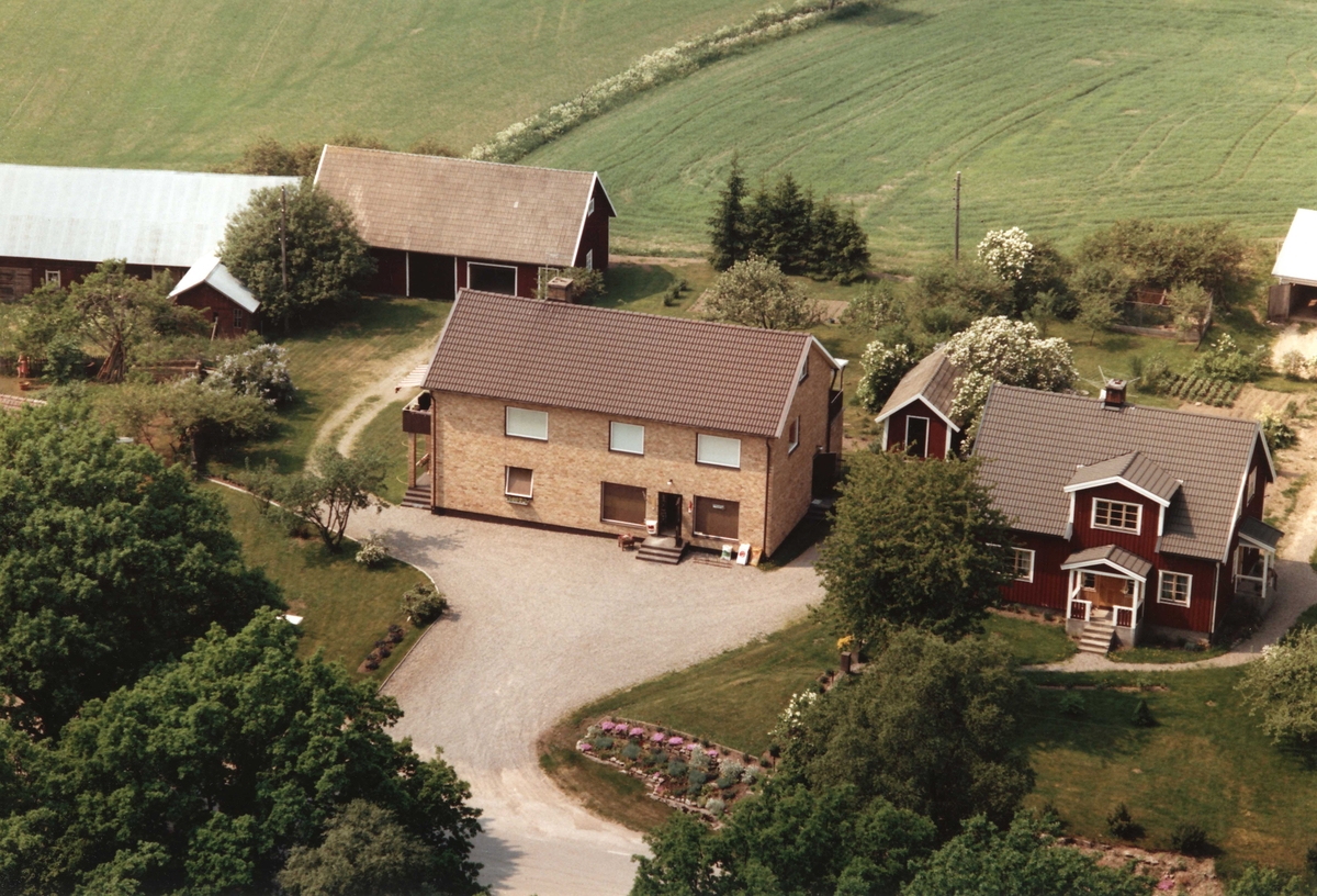 Flygfoto över fastigheter i Hultsjö, Kättorp 8 till vänster. Sävsjö kommun.