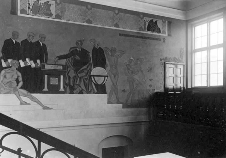 Jönköpings högre allmänna läroverk. Väggmålning av Georg Pauli i stora trappuppgången.