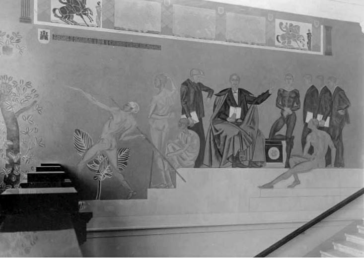 Jönköpings högre allmänna läroverk. Målningen i övre trapphallen av Georg Pauli.