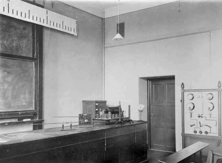Jönköpings högre allmänna läroverk med interiör från ett klassrum.