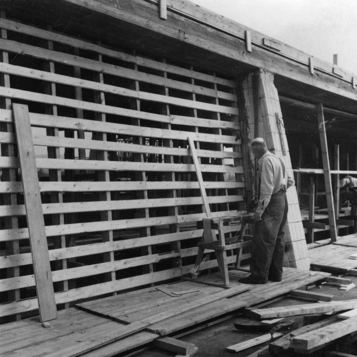 Nya Länsmuseet i jönköping under uppbyggnad. Ställning för glasbetong.
