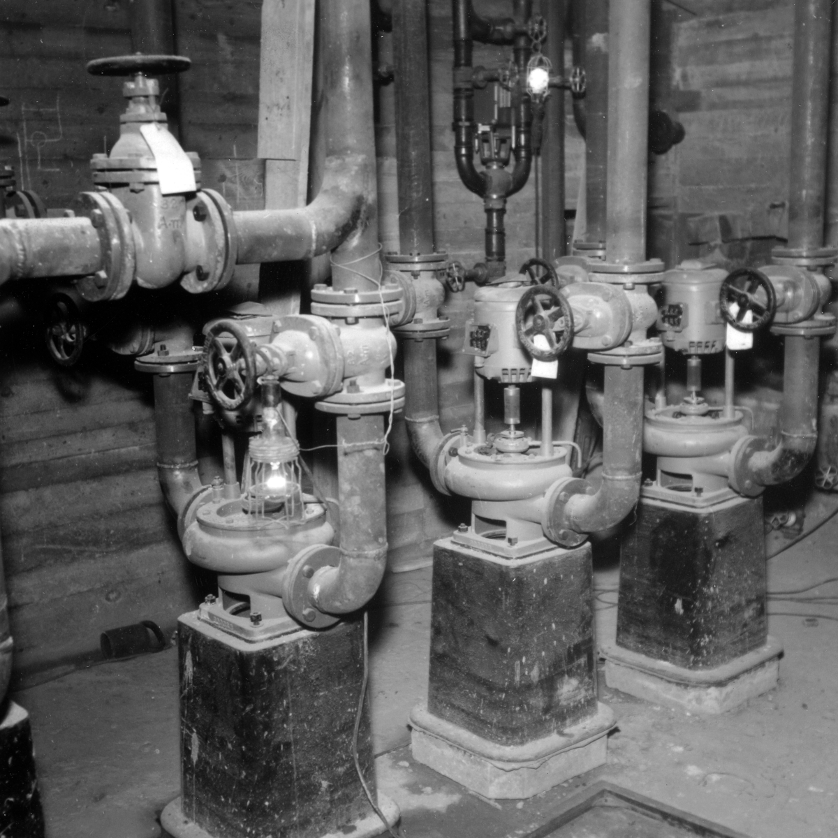 Nya Länsmuseet i Jönköping under uppbyggnad. Pumparna i värmecentralen.